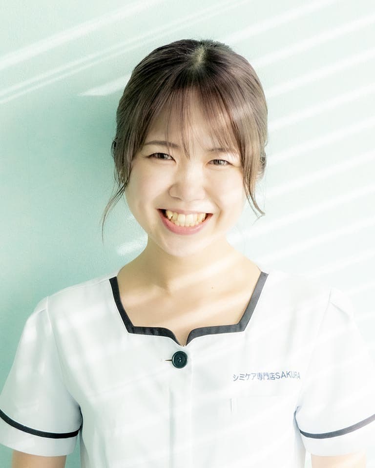 年々、お肌の悩みが解決できずに悩んでいました。SAKURAで働いて今までやっていたことは何だったんだろうと思うほど、SAKURAの美容マシンは凄かったです。そして綺麗になる◎そんな素晴らしさを経験しました。改善は肌の奥から、綺麗は日々の積み重ね、一緒に綺麗になってお客様と一緒に喜べる事が幸せです。